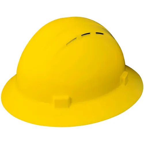 ERB® Americana® Vented Full Brim Hard Hat, 4-Point Nylon Mega Ratchet Suspension, Yellow - Pkg Qty 12