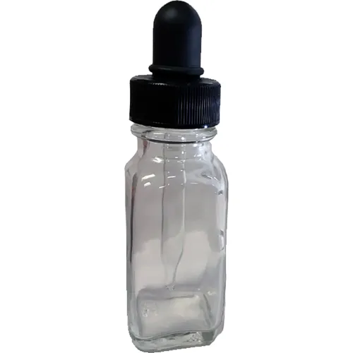 Qorpak® 1oz Square Bottle w/24-400 Blk PP Glass Dropper Assembly, Dropper size 7 x 66mm, 24PK