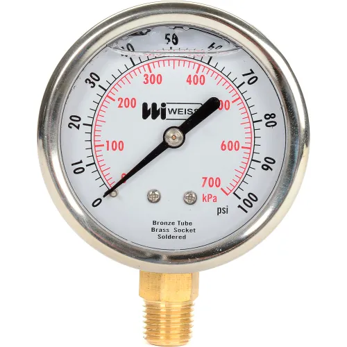 2 1/2" dial, liquid filled, 1/4" NPT bottom, 0-100 PSI