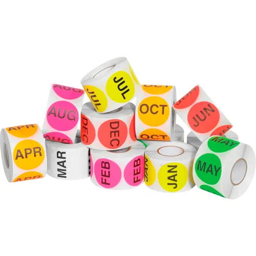 2" Dia. Round 12 Months Of The Year Easy Order Labels, Assorted Colors, 12 Rolls of 500