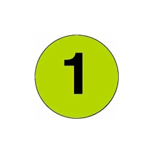 2" Dia. Round Paper Labels w/ "1" Print, Fluorescent Green & Black, Roll of 500