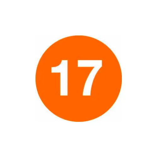 2" Dia. Round Paper Labels w/ "17" Print, Orange & White, Roll of 500