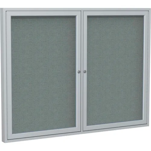 Ghent Enclosed Bulletin Board, 2 Door, 60"W x 48"H, Gray Fabric/Silver Frame