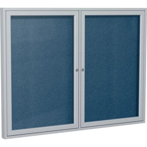 Ghent Enclosed Bulletin Board, Outdoor, 2 Door, 48"W x 36"H, Navy Vinyl/Silver Frame