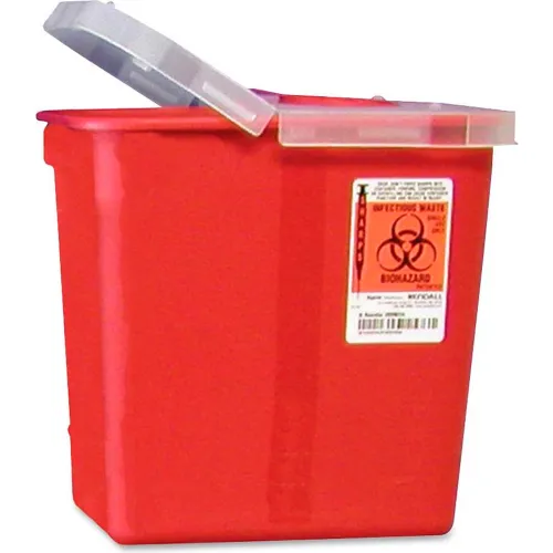 Covidien 2-Gallon Biohazard Sharps Container with Hinged Lid, 10-1/2"W x 7-1/4"D x 10"H, Red