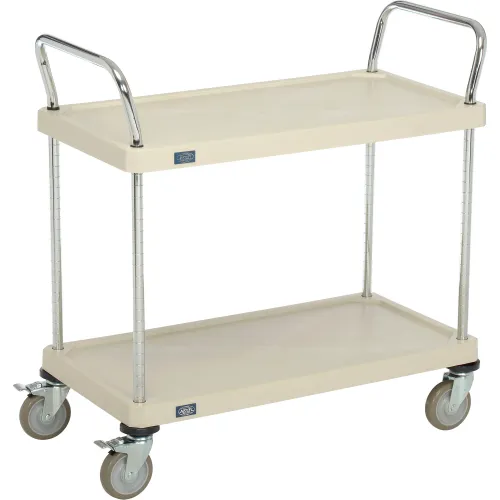 Nexel®, 2 Shelf, Utility Cart, Solid Plastic, 36"Wx18"Dx39"H, Poly Casters,4 Swivel, 2 Brake