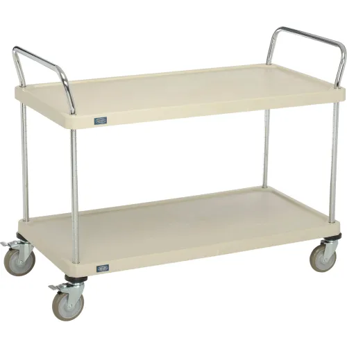 Nexel®, 2 Shelf, Utility Cart, Solid Plastic, 48"Wx24"Dx39"H, Poly Casters,4 Swivel, 2 Brake