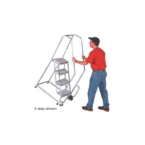 2 Step 18"W Aluminum Tilt and Roll Ladder - Heavy Duty Serrated Grating - A2SHG-TR