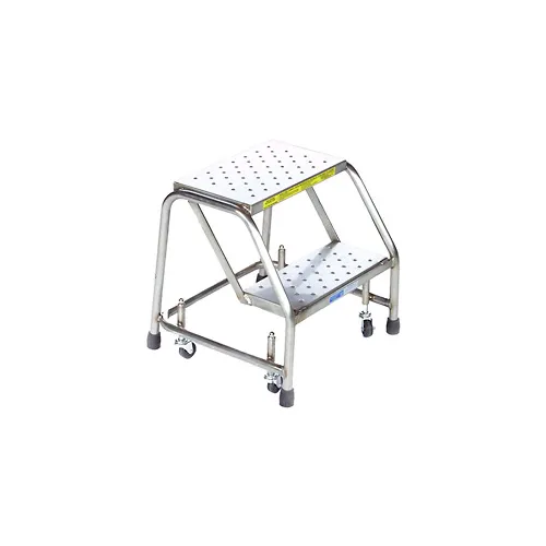 2 Step 24"W Stainless Steel Rolling Ladder W/O Rails - Perforated Tread - SS2N30P