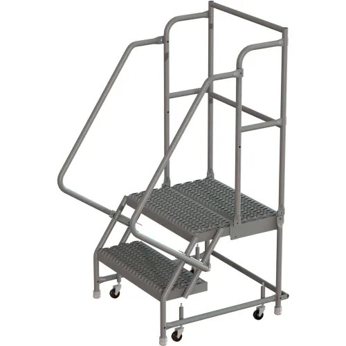 2 Step 24"W 20"D Top Step Steel Rolling Ladder, Grip Strut Tread, 36" Handrail - KDSR102242-D2