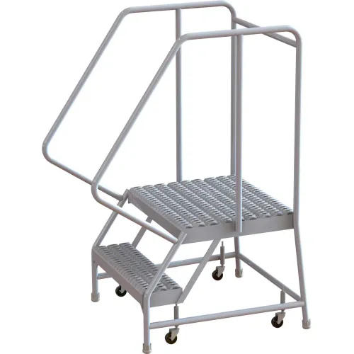 2 Step Aluminum Rolling Ladder, 16"W Grip Tread, 21"D Top Step, 32" Handrails - WLAR102165-D4