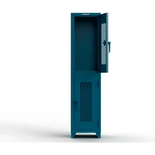 Strong Hold® 2-Tier 2 Door Extra HD Ventilated Locker, 18"W x 18"D x 75"H, Blue, Assembled