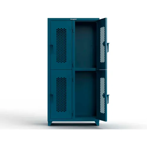 Strong Hold® 2-Tier 4 Door Extra HD Ventilated Locker, 36"W x 18"D x 75"H, Blue, Assembled