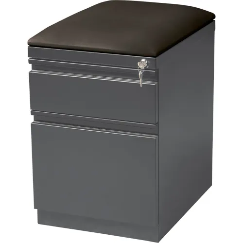 Hirsh Industries®20" Deep Mobile Pedestal Box/File with Black Seat Cushion - Charcoal