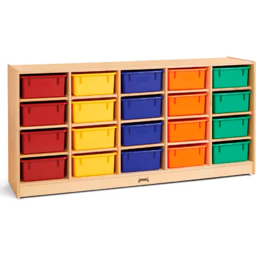 Jonti-Craft® 20 Tub Mobile Cubbie w/Colored Tubs, 60"W x 15"D x 29-1/2"H, Birch Plywood