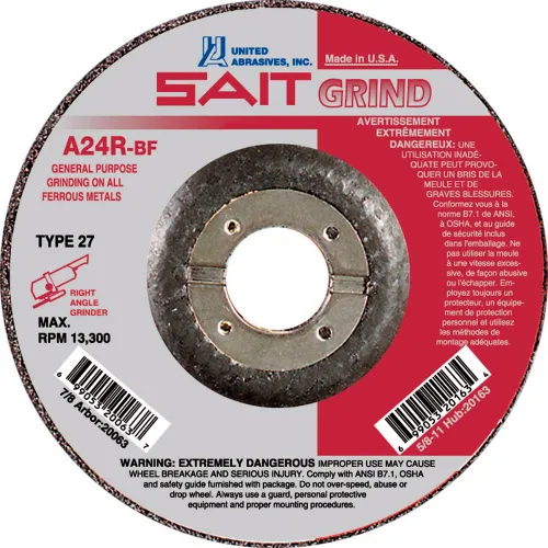 United Abrasives - Sait 20080 Depressed Center Wheel T27 A24R 7"x 1/4" x 7/8" 24 Grit Aluminum Oxide - Pkg Qty 25