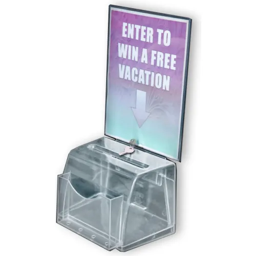 Global Approved 206009 Medium Molded Suggestion Box W/ Pocket, Lock & Key, 7.75" x 6", Acrylic