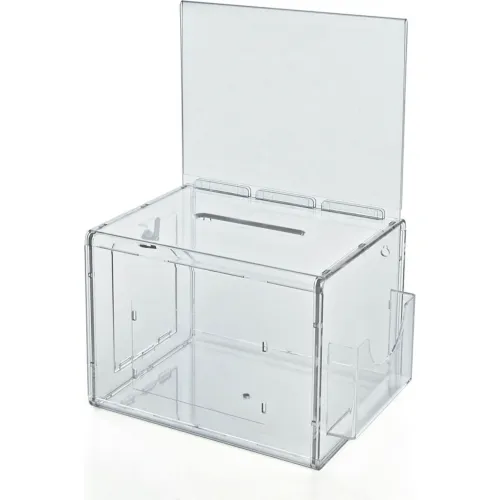 Global Approved 206389 Large Suggestion Box W/ Pocket, Lock & Keys, Clear, 7.75" x 6" ,1 Piece