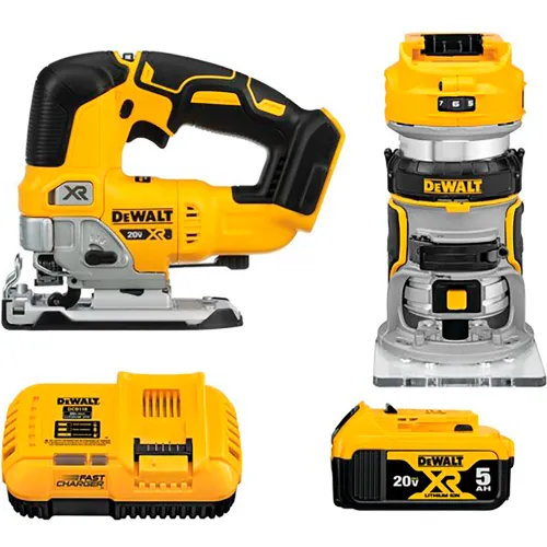 DeWalt® 20V MAX XR Brushless Cordles Compact Router and Jig Saw 2-Tool Woodworking Kit