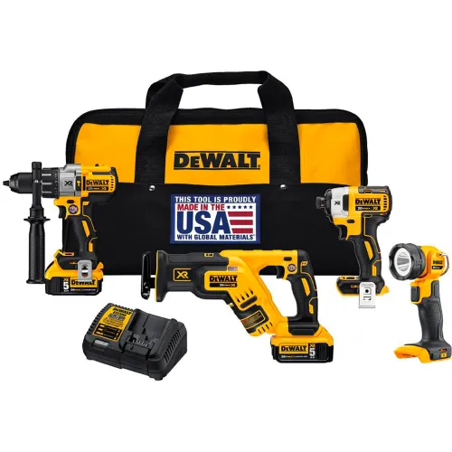 DeWALT DCK494P2 20V MAX XR Li-Ion 4 Tool Cordless Combo Kit 2 Batteries 5.0Ah Charger Contractor Bag