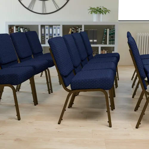 Flash Furniture 21''W Stacking Church Chair - Fabric - Navy Blue Dot Pattern - Hercules Series