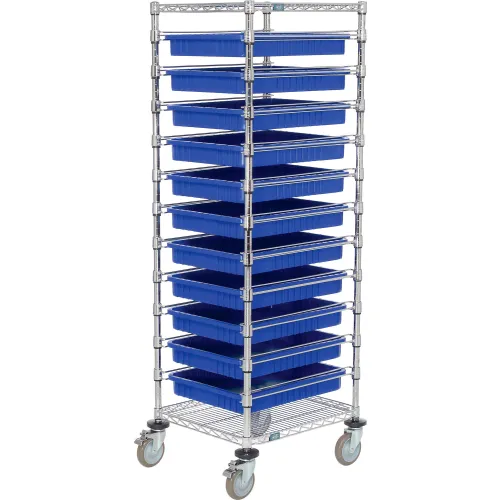 Global Industrial Chrome Wire Cart With (11) 3"H Blue Grid Containers, 21x24x69