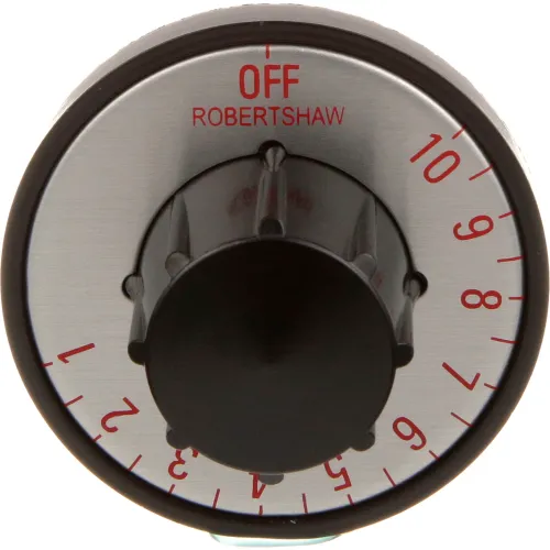 Allpoints 22-1594 2" Black Warmer / Steamer Thermostat Knob with Silver Insert (Off, 1-10)