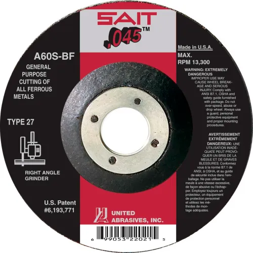 United Abrasives - Sait 22021 Depressed Center Wheel T27 4-1/2"x .045" x 7/8" 60 Grit Alum. Oxide - Pkg Qty 50