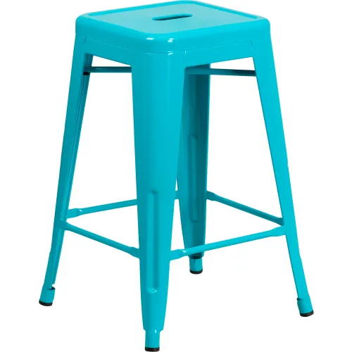 Flash Furniture 24'' Backless Counter-Height Stool - Metal - Square - Crystal Teal Blue