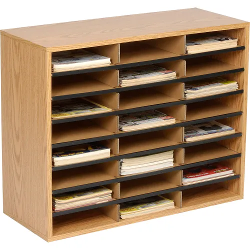 24 Compartment Wood Literature Sorter - 23-1/2"H Oak