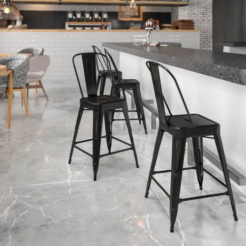 Flash Furniture 24'' High Metal Indoor-Outdoor Counter Height Stool with Back - Black