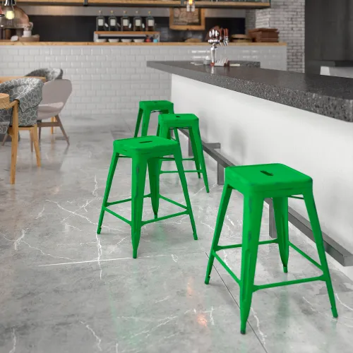 Flash Furniture 24"H Backless Counter Height Stool - Metal - Green
