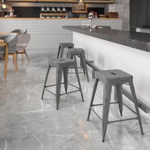 Flash Furniture 24"H Backless Counter Height Stool - Metal - Silver Gray