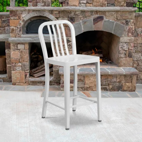 Flash Furniture 24"H White Metal Counter Height Stool with Vertical Slat Back