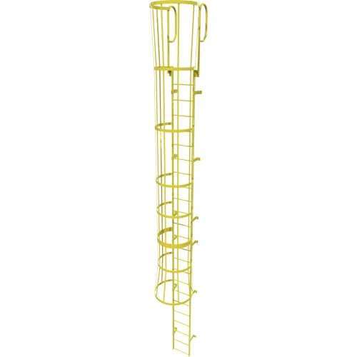 24 Step Steel Caged Walk Through Fixed Access Ladder, Safety Yellow - WLFC1224-Y