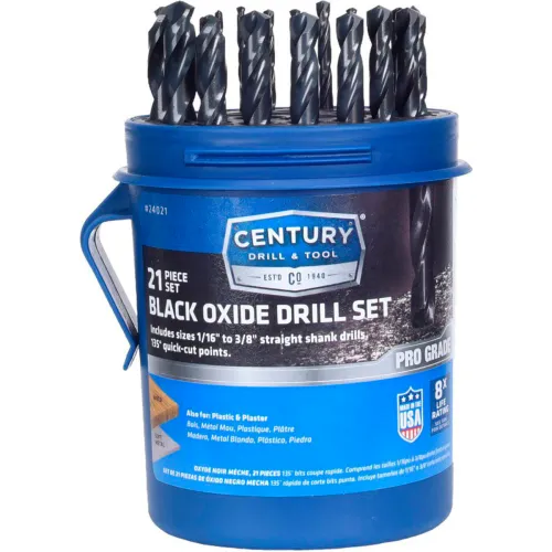 Century Drill 24021 - Black Oxide Drill Bit 21 Piece Set - 135° - 1/16" to 1/2" by 32nds