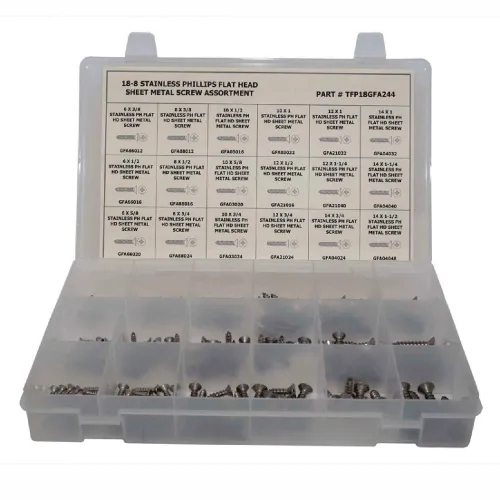 244 Piece Sheet Metal (Tapping) Screw Assortment - #6 to #14 - Phillips Flat Head - 304 SS