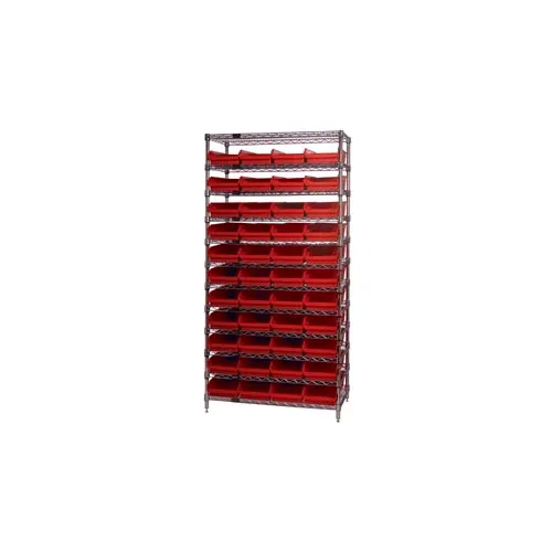 Global Industrial Chrome Wire Shelving with 44 4"H Plastic Shelf Bins Red, 36x24x74