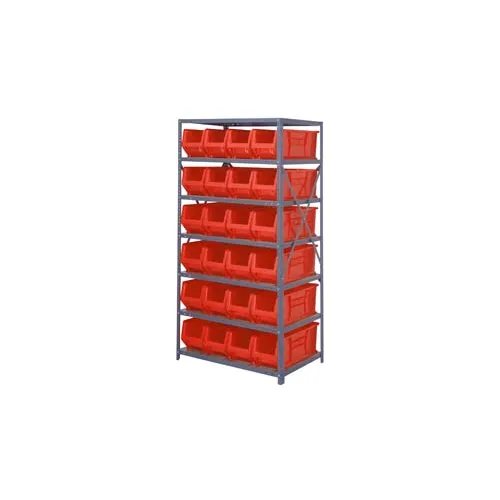 Quantum 2475-951 Steel Shelving with 24 24"D Hulk Hopper Bins Red, 24x36x75