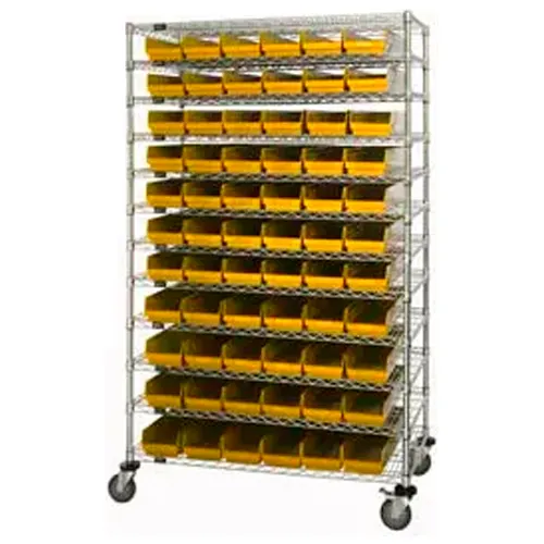 Global Industrial Chrome Wire Shelving with 88 4"H Plastic Shelf Bins Yellow, 60x24x74