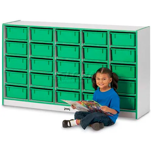 Jonti-Craft® 25 Tub Mobile Cubbie w/Tubs, 60"W x 15"D x 35-1/2"H, Gray Laminate, Black Edge
