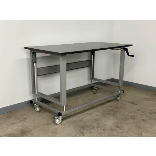 Stackbin® 2500 Manual Hydro Lift Mobile Workbench, 48 x 36", Phenolic Beveled Edge, Gray
