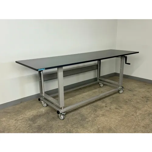 Stackbin® 2500 Manual Hydro Lift Mobile Workbench, 96 x 36", Phenolic Beveled Edge, Gray