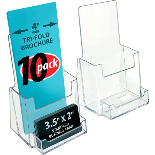 Global Approved 252922 Tri-Fold Brochure Holder W/ Business Card Pocket, 4" x 7.25"