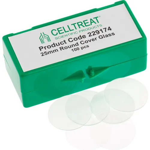 CELLTREAT® 25mm Round Cover Glass, Fits 6 Well Plate, Sterile, 100/PK