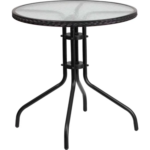 Flash Furniture 28" Round Tempered Glass Metal Table with Black Rattan Edging