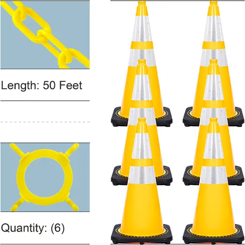 Mr. Chain® 28" Standard Traffic Cone Kit with 2" x 50'L Standard Chain, Yellow, Pack of 6