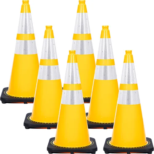 Mr. Chain® 28"H Reflective Traffic Cones, PVC, 14" x 14" Base, Yellow, Pack of 6