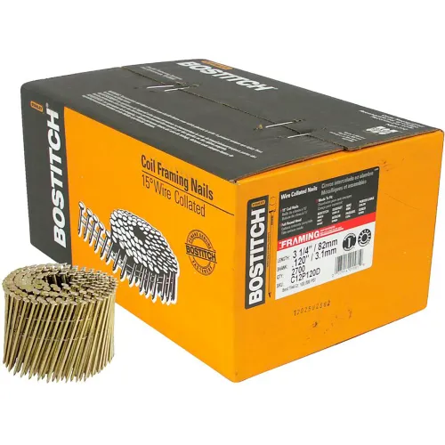 Bostitch 3-1/4" x .120 Smooth Shank 15 Degree Coil Framing Nails, 2700/Qty