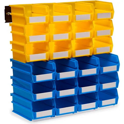 Triton Products Wall Storage Unit w/ 12 Red Bins & 12 Blue Bins & 2 Wall Mount Rails